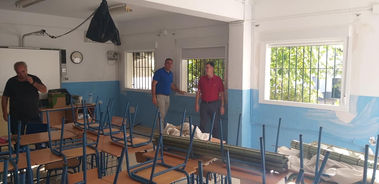 El alcalde de Burguillos, Domingo Delgado Pino, y el concejal de Educación, Manuel Fernández Solís, han visitado hoy el centro educativo
