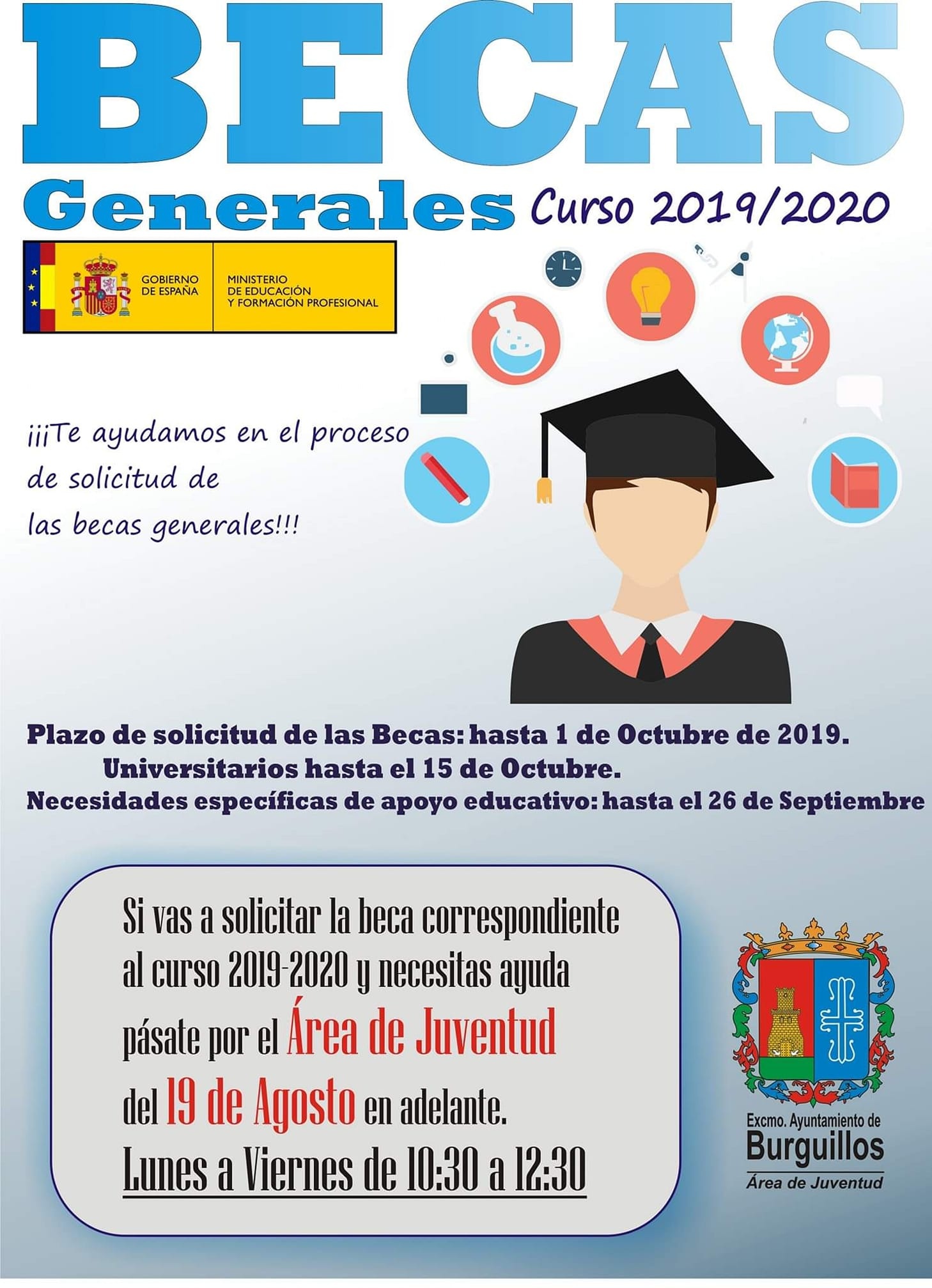 Para asesoramiento e información en la oficina de Juventud, desde el 19 de agosto en horario de 10:30 a 12:30