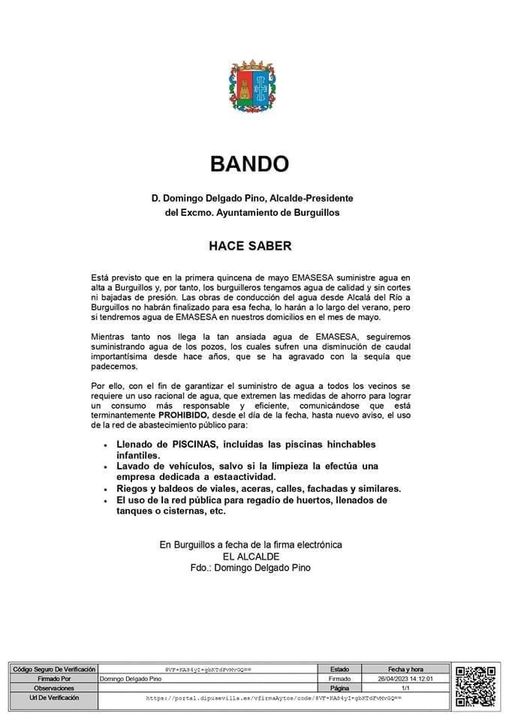 Recordamos que aún sigue vigente el bando dictado por el alcalde el pasado 26 de abril.