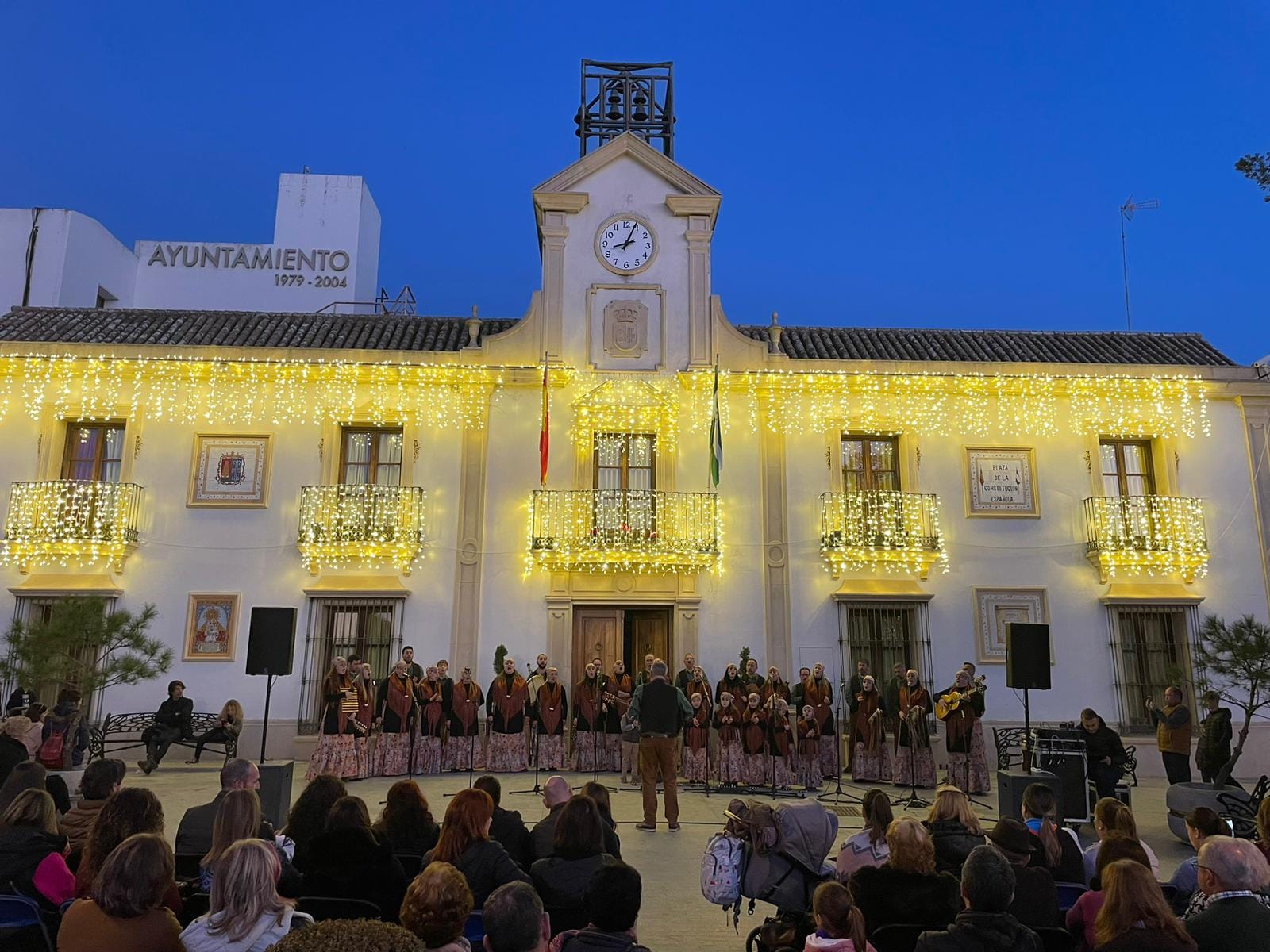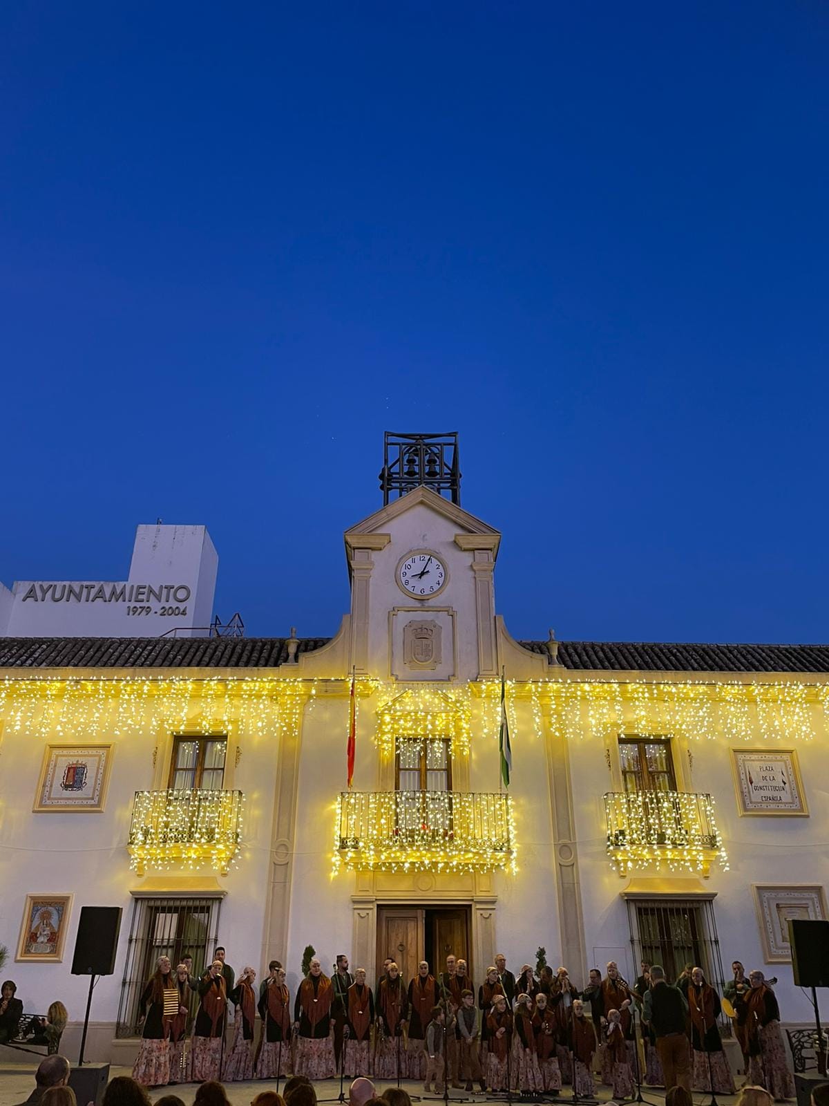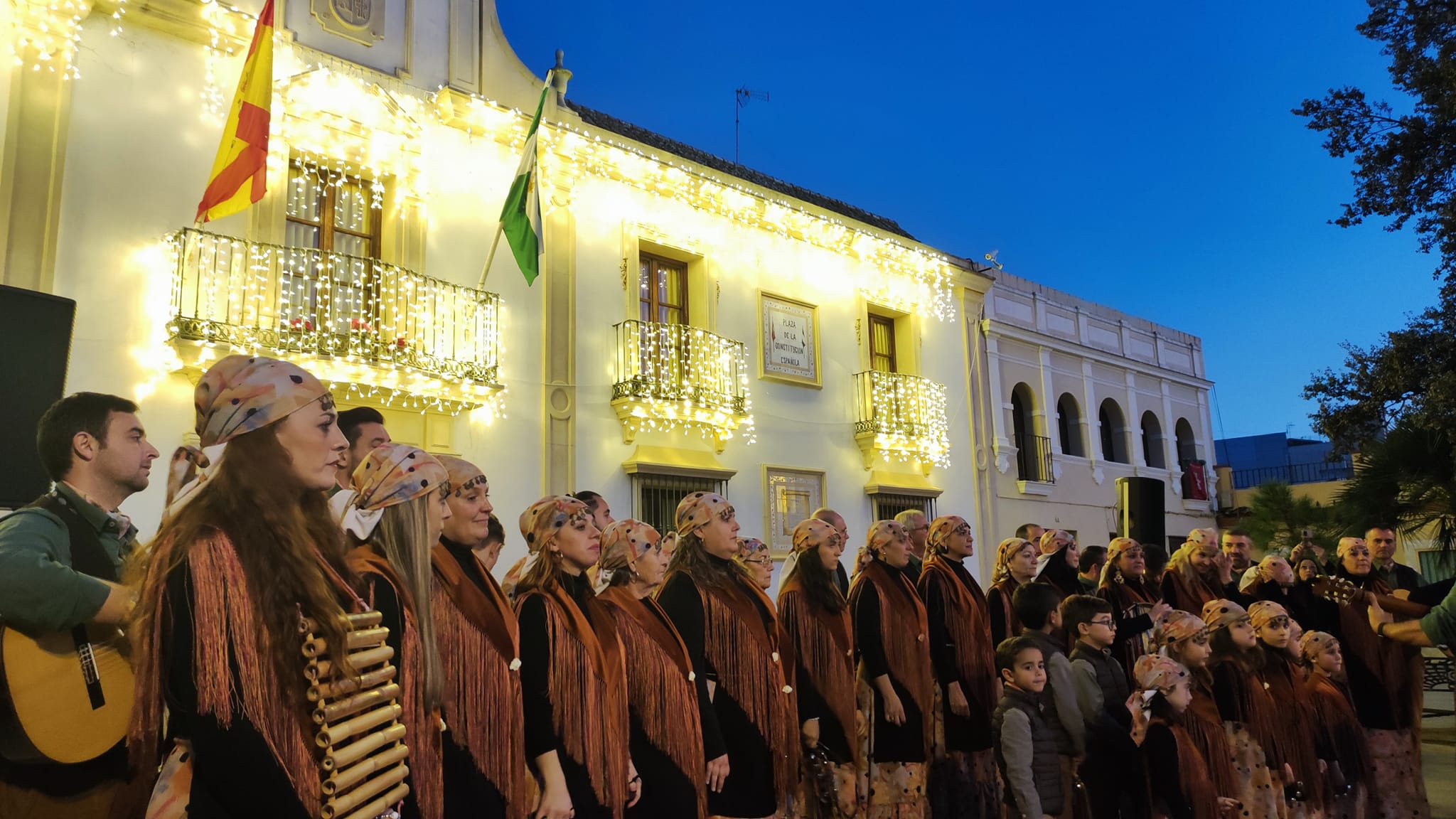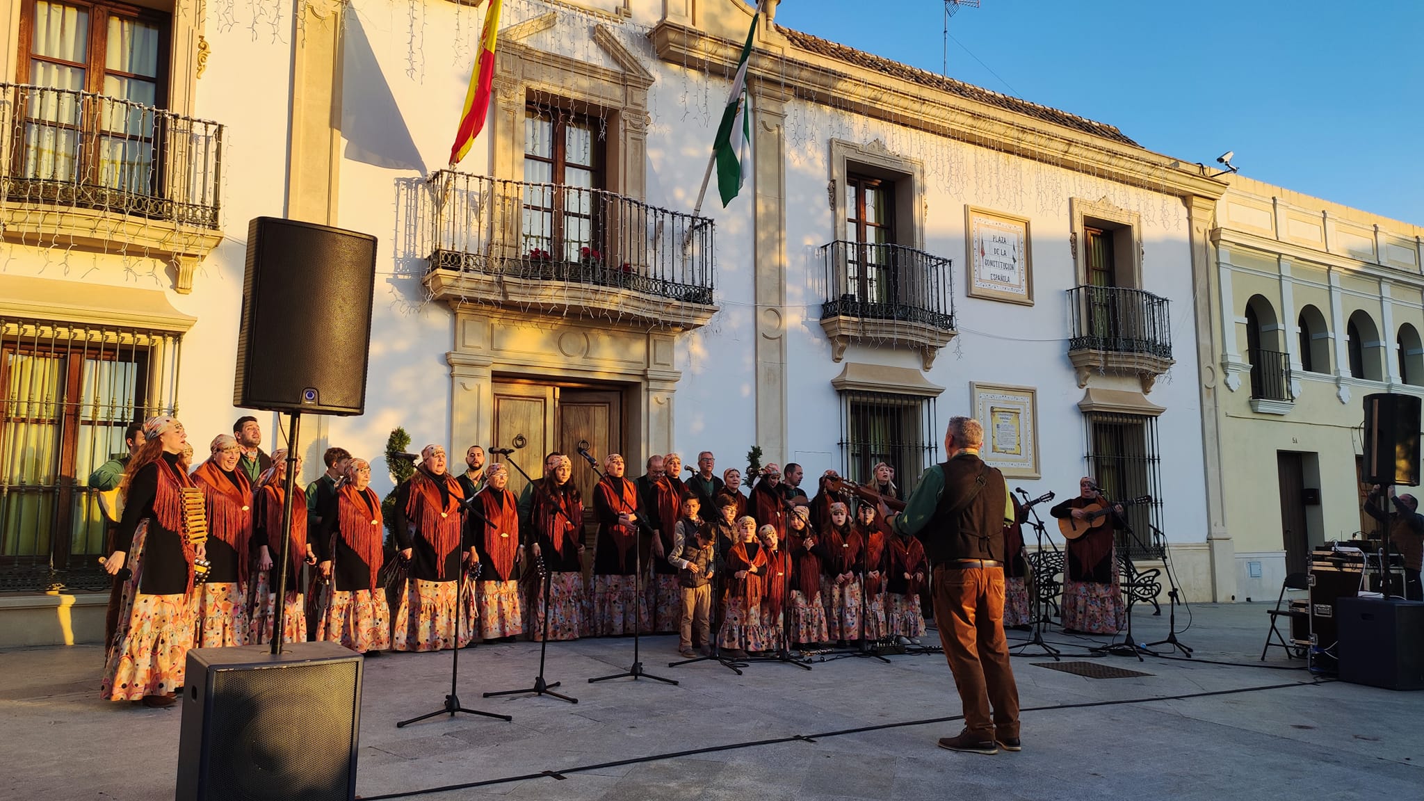 Coro Los Canasteros en una Plaza de la Constitución repleta de público. Con este extraordinario concierto ponemos fin a las actividades de este año. No hay mejor manera de hacerlo que fomentando nuestras tradiciones andaluzas.