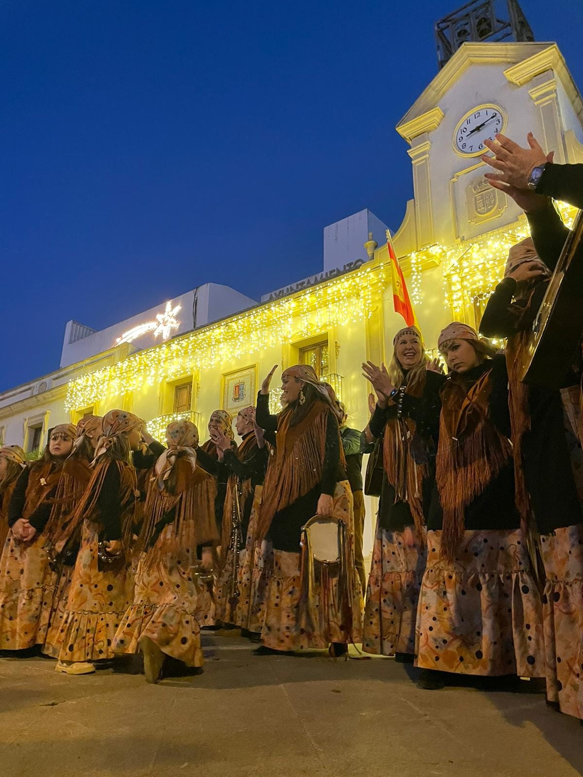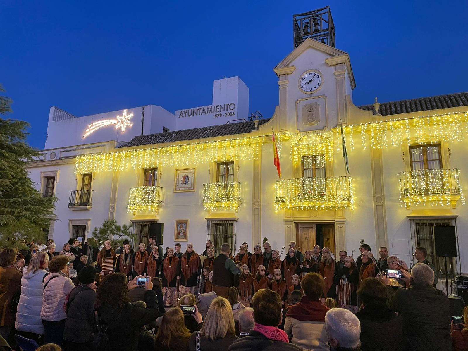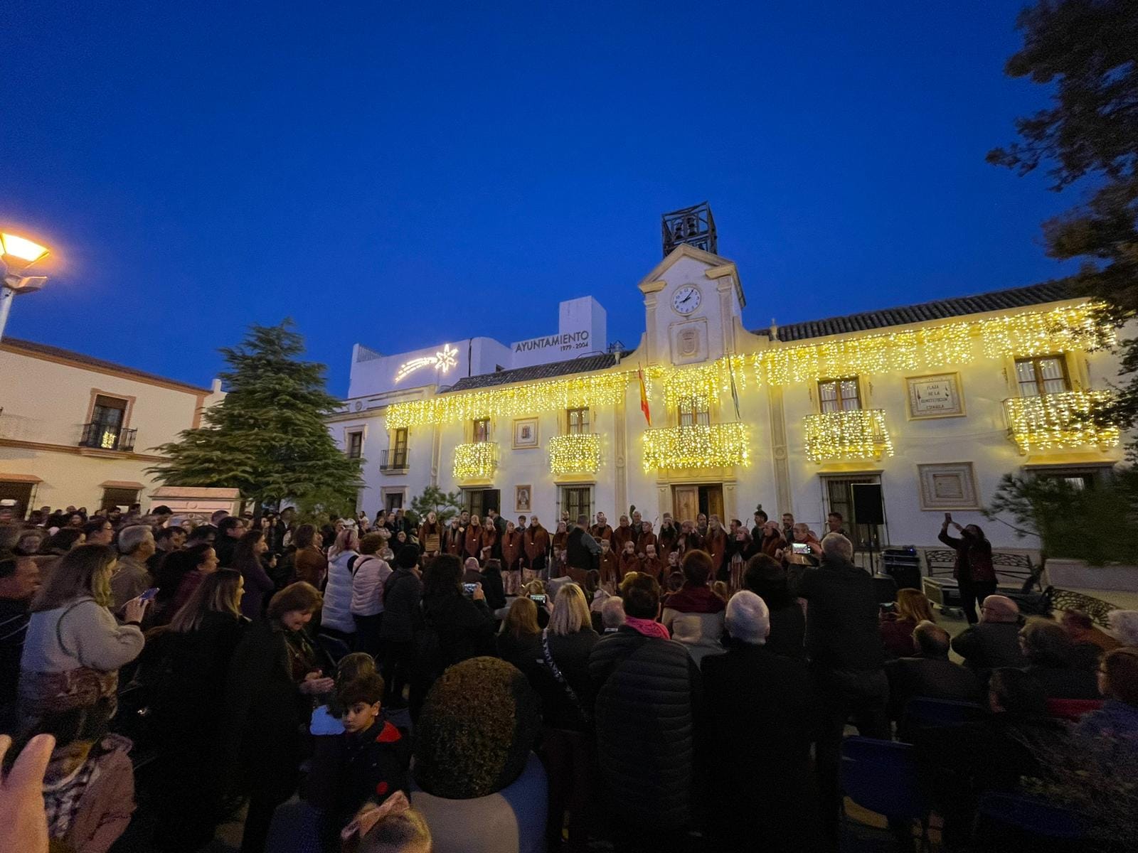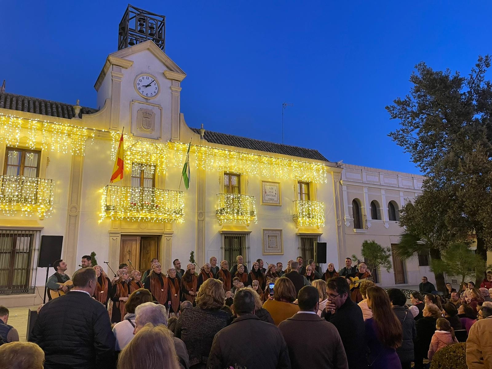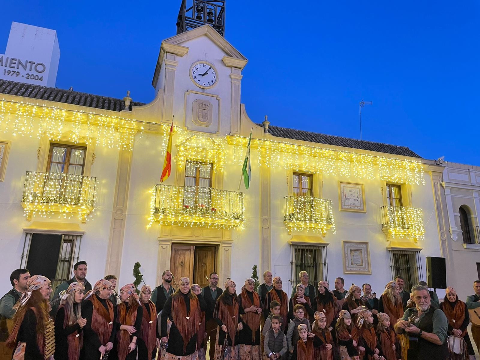 Coro Los Canasteros en una Plaza de la Constitución repleta de público. Con este extraordinario concierto ponemos fin a las actividades de este año. No hay mejor manera de hacerlo que fomentando nuestras tradiciones andaluzas.