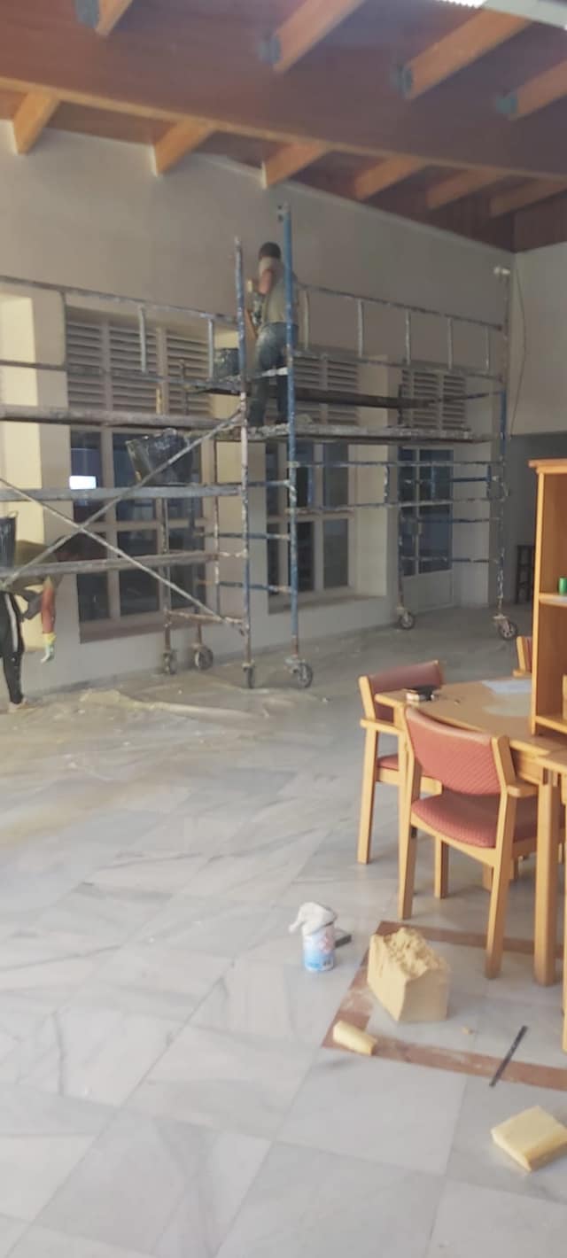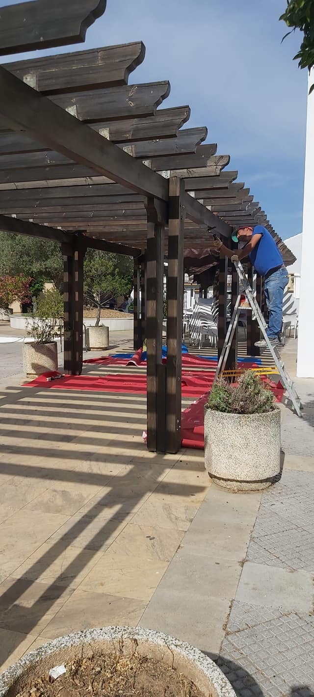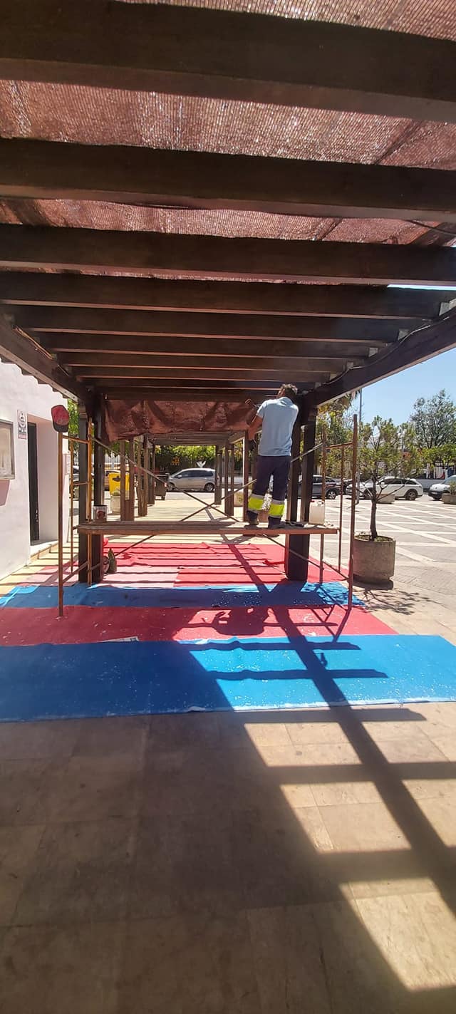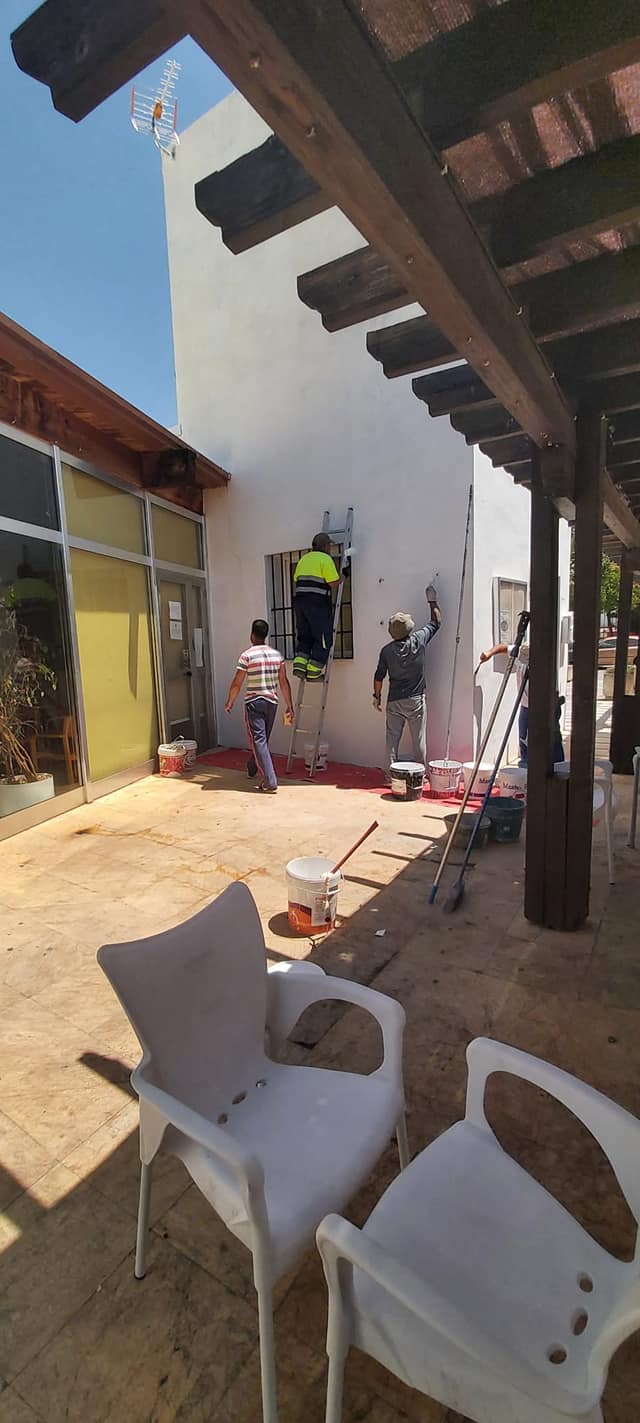 Durante las pasadas semanas se han realizado trabajos de mantenimiento en el Centro de Día ante el deterioro que sufría tras años de abandono. En este caso, se ha procedido a la impermeabilización de la cubierta y tejado, tratamiento antihumedad en techos interiores, sustitución de tejas rotas, reparación y limpieza de canaletas exteriores, reparación de paredes y techos interiores,reparación de estucos, pintura interior y exterior del edificio y reparación y tratamiento de la pérgola de madera exterior.