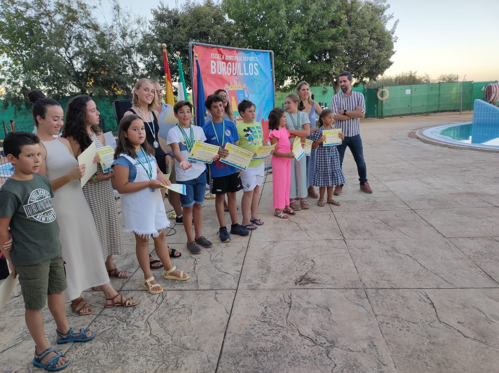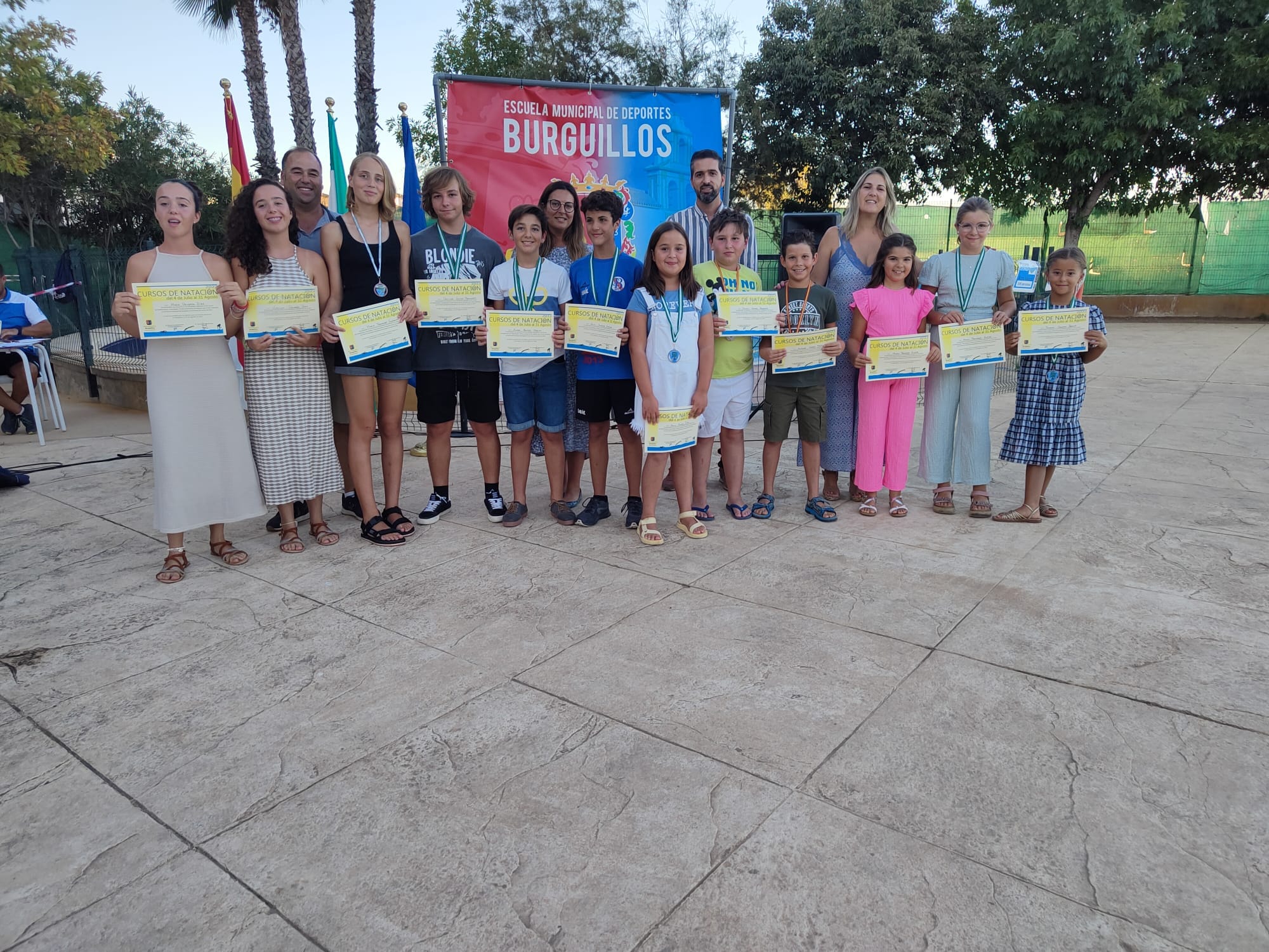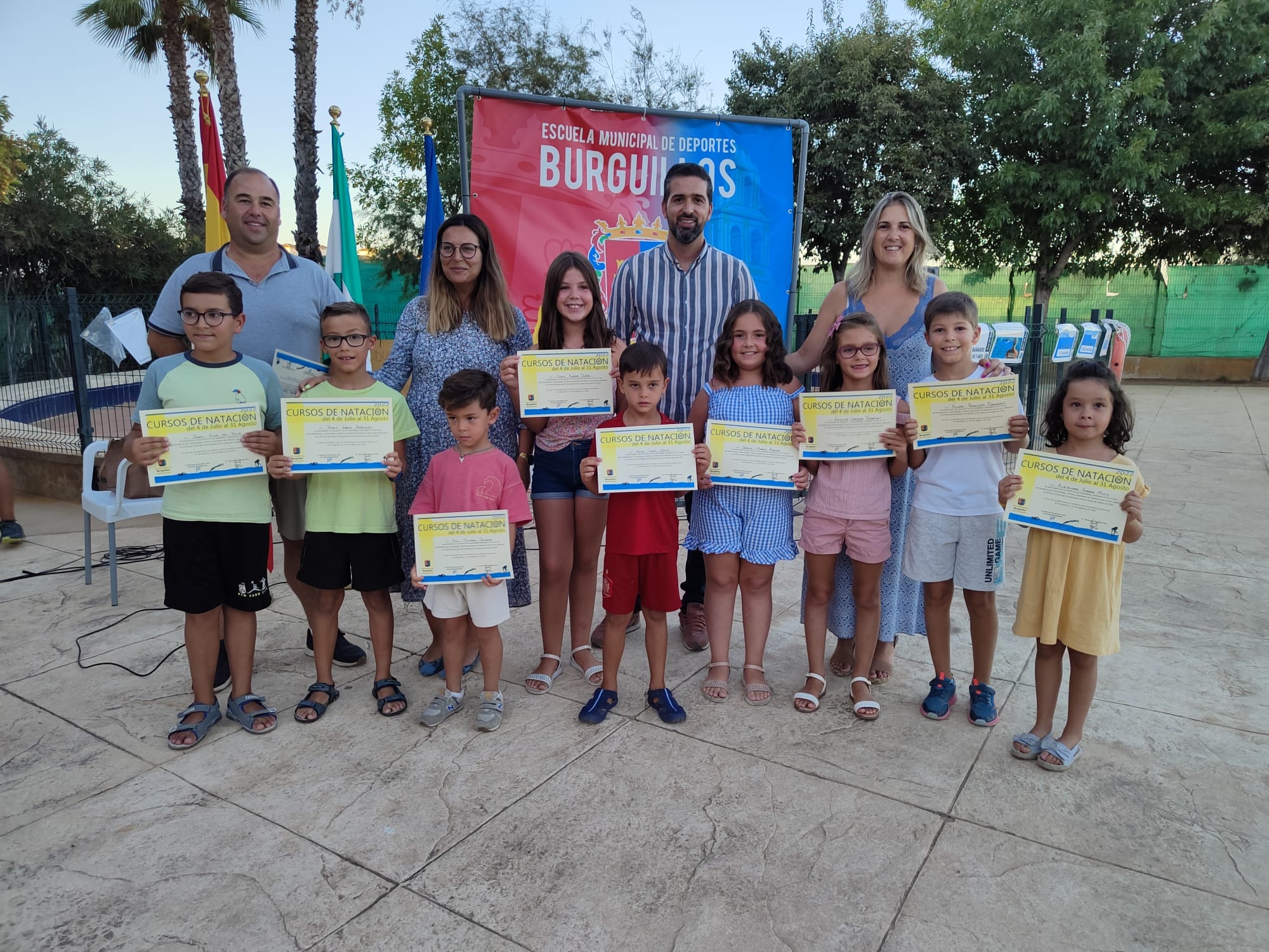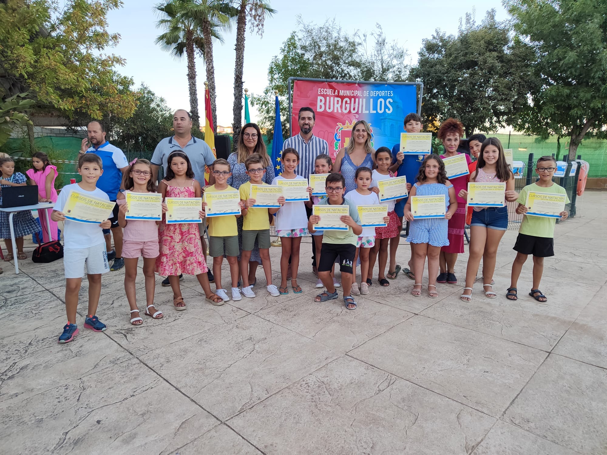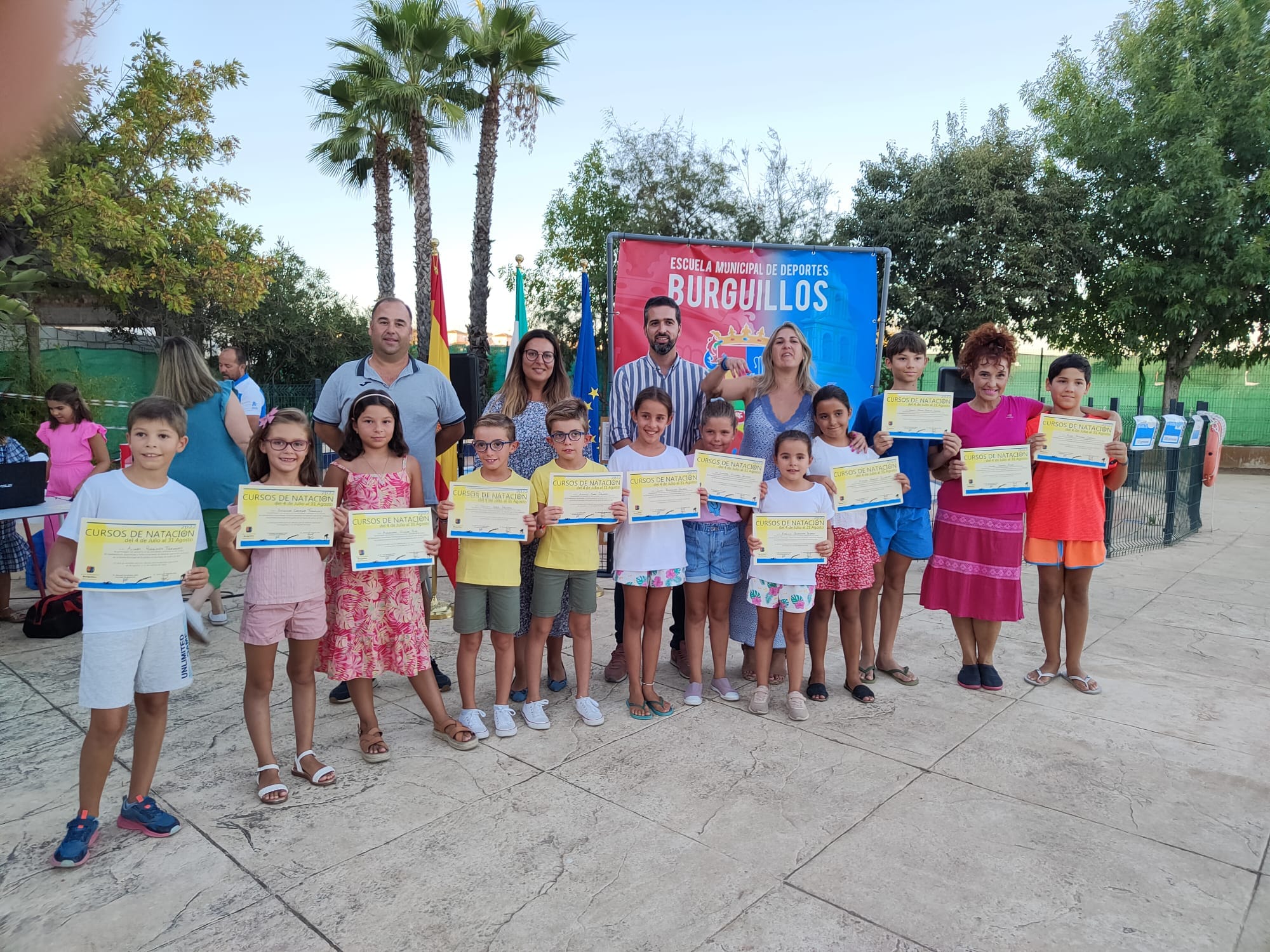 - Los cursos de #Natación de verano se clausuraron ayer con la entrega de diplomas a todos los participantes en dichos cursos. Al acto acudieron varios miembros del equipo de gobierno.