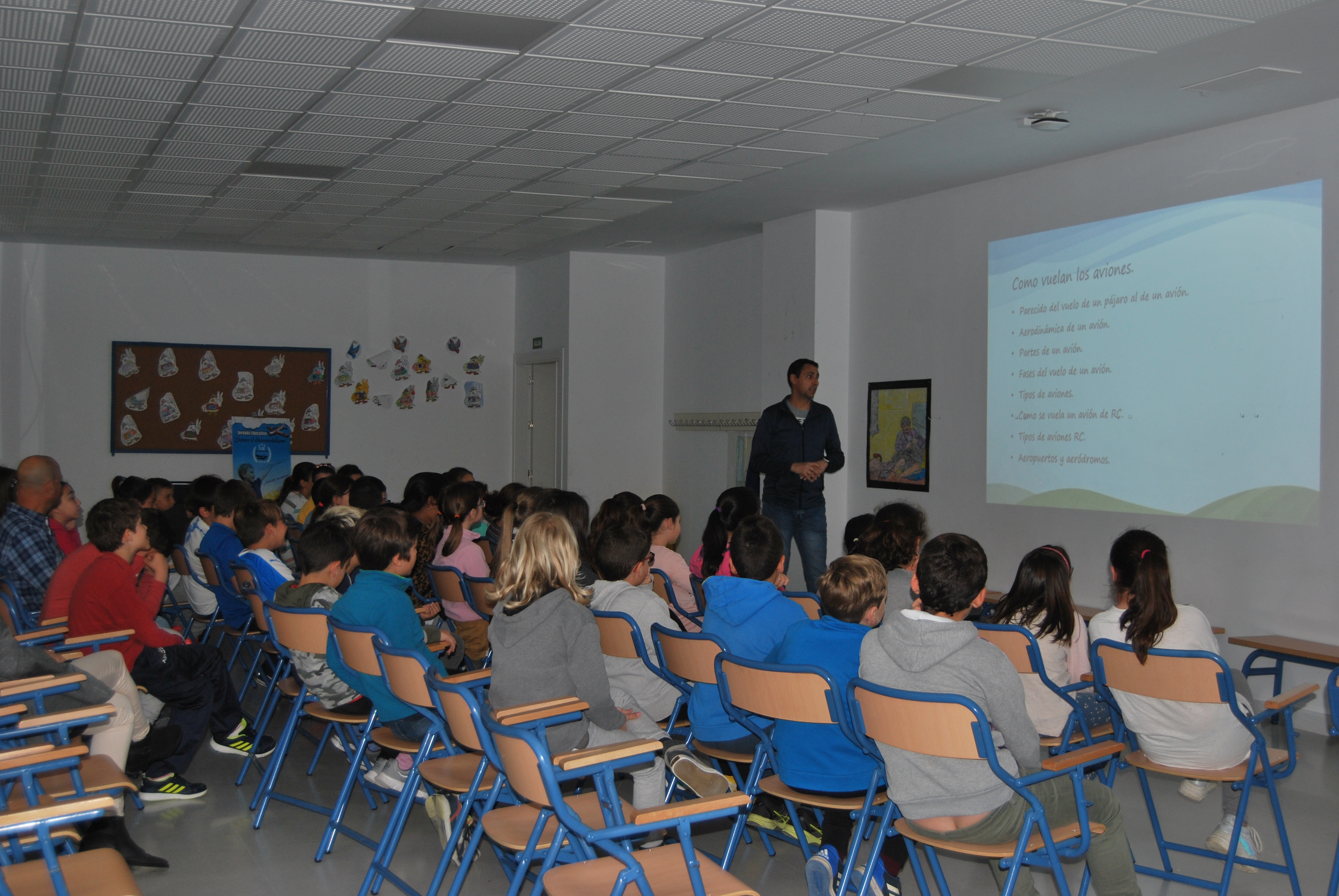 La actividad, organizada por el Ayuntamiento y el club de aeromodelismo Villa de Burguillos, en colaboración con los AMPAS de los colegios Manuel Medina y Ágora, tiene como objetivo fomentar este deporte entre los alumnos de los colegios, a través de una charla y una exposición, para que los pequeños a la vez que aprenden se diviertan.