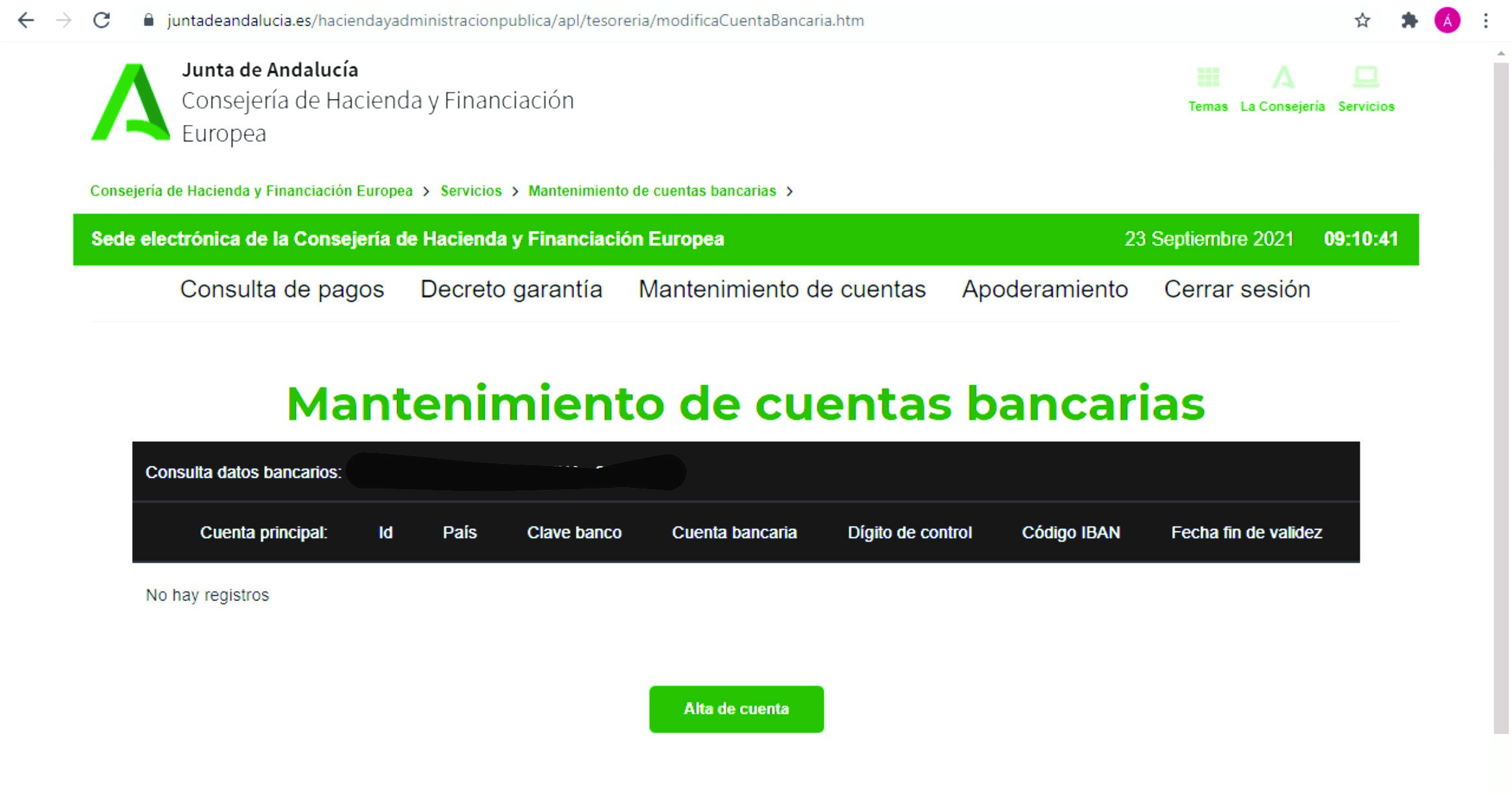 .- Allí podrá comprobar si su cuenta está dada de alta ya que aparecerá si es así, en caso contrario, tendrá que introducir los datos para darla de alta.