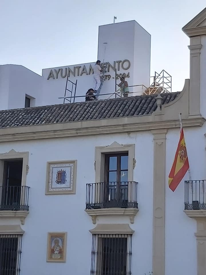 Poda de palmeras, arreglo de bancos del Parque del Barrio Lejos y pintura de la parte trasera de la fachada del Ayuntamiento