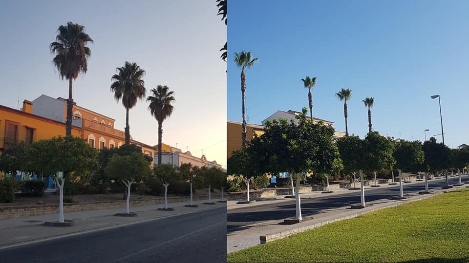 Poda de palmeras, arreglo de bancos del Parque del Barrio Lejos y pintura de la parte trasera de la fachada del Ayuntamiento
